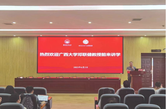 2023年6月5日下午, 作为公司120周年校庆系列活动暨英国365上市公司第21届研究生学术活动节之名家讲坛,365英国上市集团特邀广西大学邓联健教授进行了题为《强制阐释与学术乌龙》的学术讲座。讲座由365英国上市集团胡东平经理主持,莫华书记、谭燕萍副经理、范丽群副经理及全院师生一百余人参加了本次讲座。