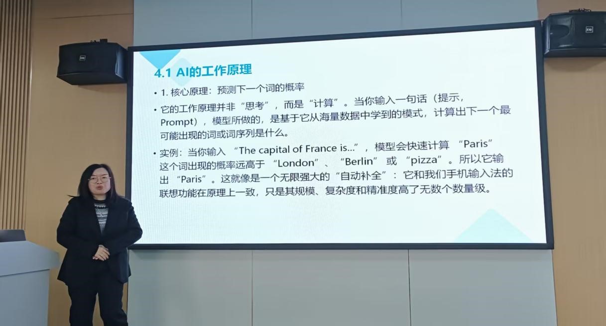 施卓廷老师系统阐述了人工智能(AI)在外语学习与科研中的发展现状,并结合实际案例,生动演示了AI在雅思口语备考、英语写作与听力训练中的具体应用。她指出,AI不仅是提升学习效率的工具,更是培养外语核心素养的重要助力。在科研方面,施卓廷老师重点介绍了AI辅助文献综述撰写与项目研究的方法,强调只有具备扎实的语言基础和系统的知识体系,才能向AI发出精准指令,推动人工智能与学术研究的深度融合。