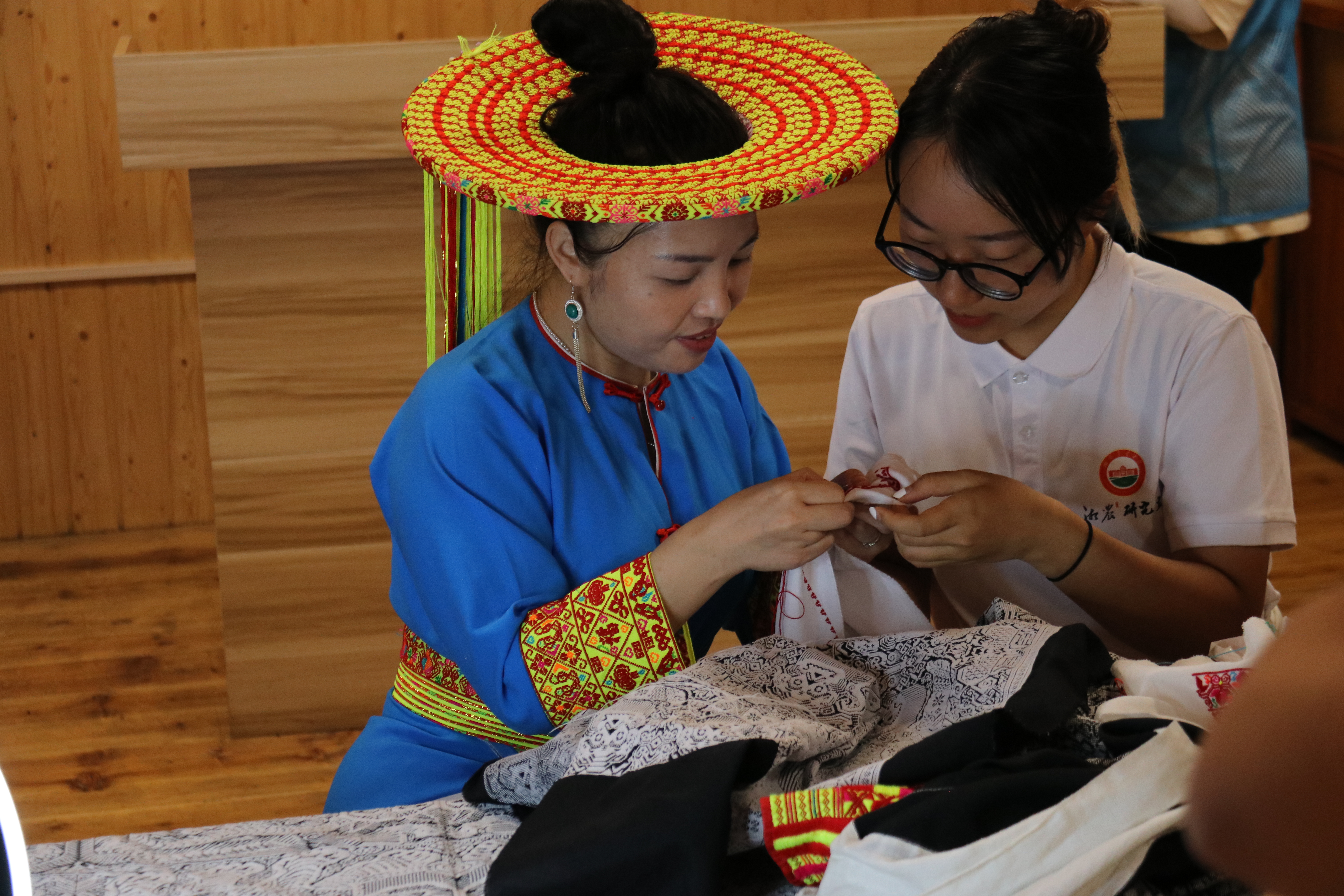 花瑶挑花传习馆中,省级传承人沈燕希老师向博士团揭示了这门指尖艺术的奥秘。其图案包罗万象,涵盖自然万物与生活百态。最令人惊叹的是其“无稿成花”的技艺精髓——“所见皆可入心,心念即成针下”,全凭心中意象,运用“反面挑、正面看”的独特技法,在土布经纬间精准落针。然而,一件精美的挑花筒裙需耗时一年,挑刺三四十万针,漫长的周期、艰辛的劳作与微薄的回报,让年轻一代望而却步。面对传承困境,博士团与传承人携手开启“非遗直播间”,在直播间里,网友们与沈燕希老师交流互动,在“啧啧”称叹中,更加深入了解了挑花技艺针线翻飞、图案渐次绽放的神奇过程。沈燕希老师坚定地表达愿景:“要让花瑶挑花走向世界!”团队成员亦在老师的指导下尝试挑花,于一针一线中体悟这项“无字史书”所承载的花瑶民族的坚韧、智慧与独特审美。