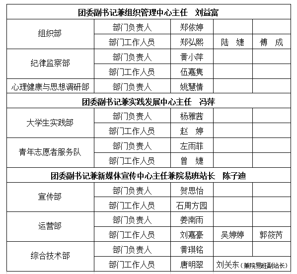 经个人申请、资格审查、面试考察、学工组研究决定,拟任命以下同学为365英国上市集团第二十届团委、员工会主要干部,具体名单如下: