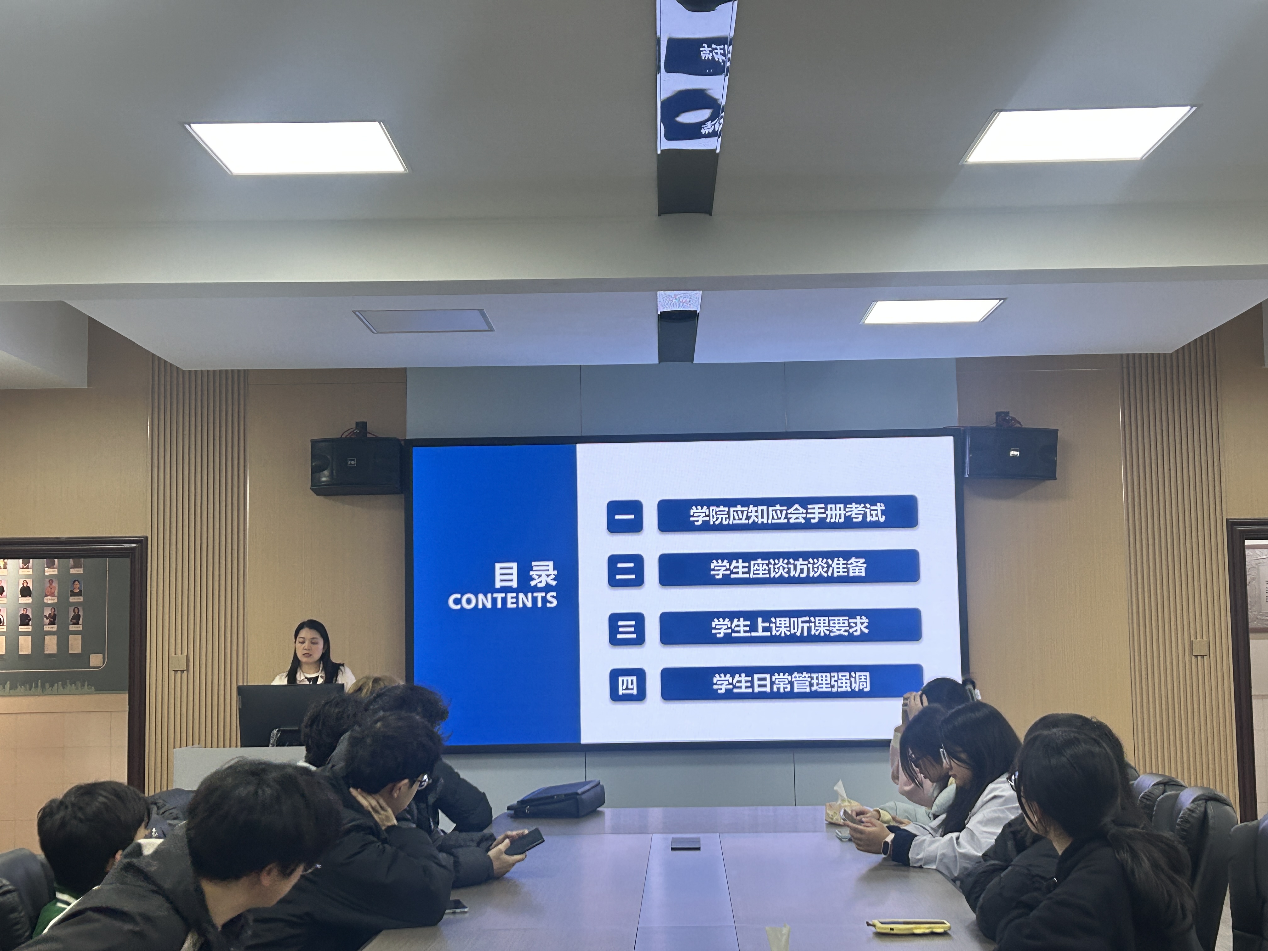 为充分发挥员工骨干在评估中的示范引领作用,11月20日下午,公司学工办主任曾葵华在九教南502会议室组织公司全体员工班级骨干召开本科公司产品审核评估集中培训。培训课详细学习了公司《本科公司产品审核评估应知应会手册(员工版)》、公司《本科公司产品审核评估“员工发展”版块应知应会手册(员工用)》《365英国上市集团本科公司产品审核评估专家访谈手册》三份文件和《英语专业人才培养方案》《日语专业人才培养方案》两份方案。针对访谈座谈预设重点访谈问题和注意事项进行了全面的解答和辅导,鼓励同学们以积极、乐观的态度做好座谈访谈准备,带头规范行为、主动配合,带动班级同学积极参与迎评工作。