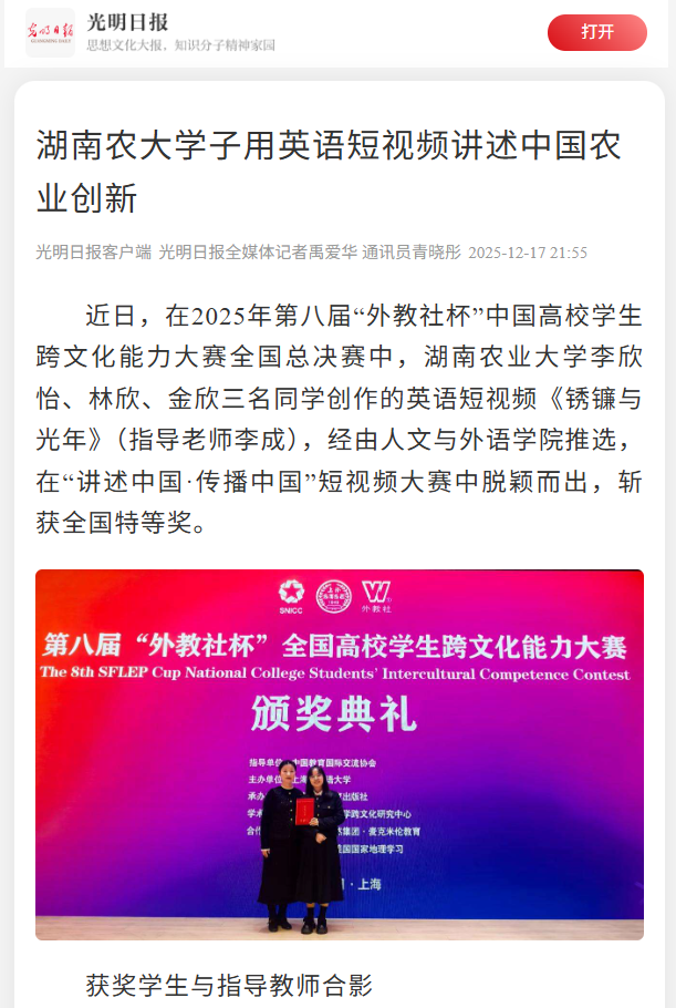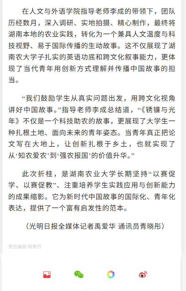 【光明日报】湖南农大学子用英语短视频讲述中国农业创新