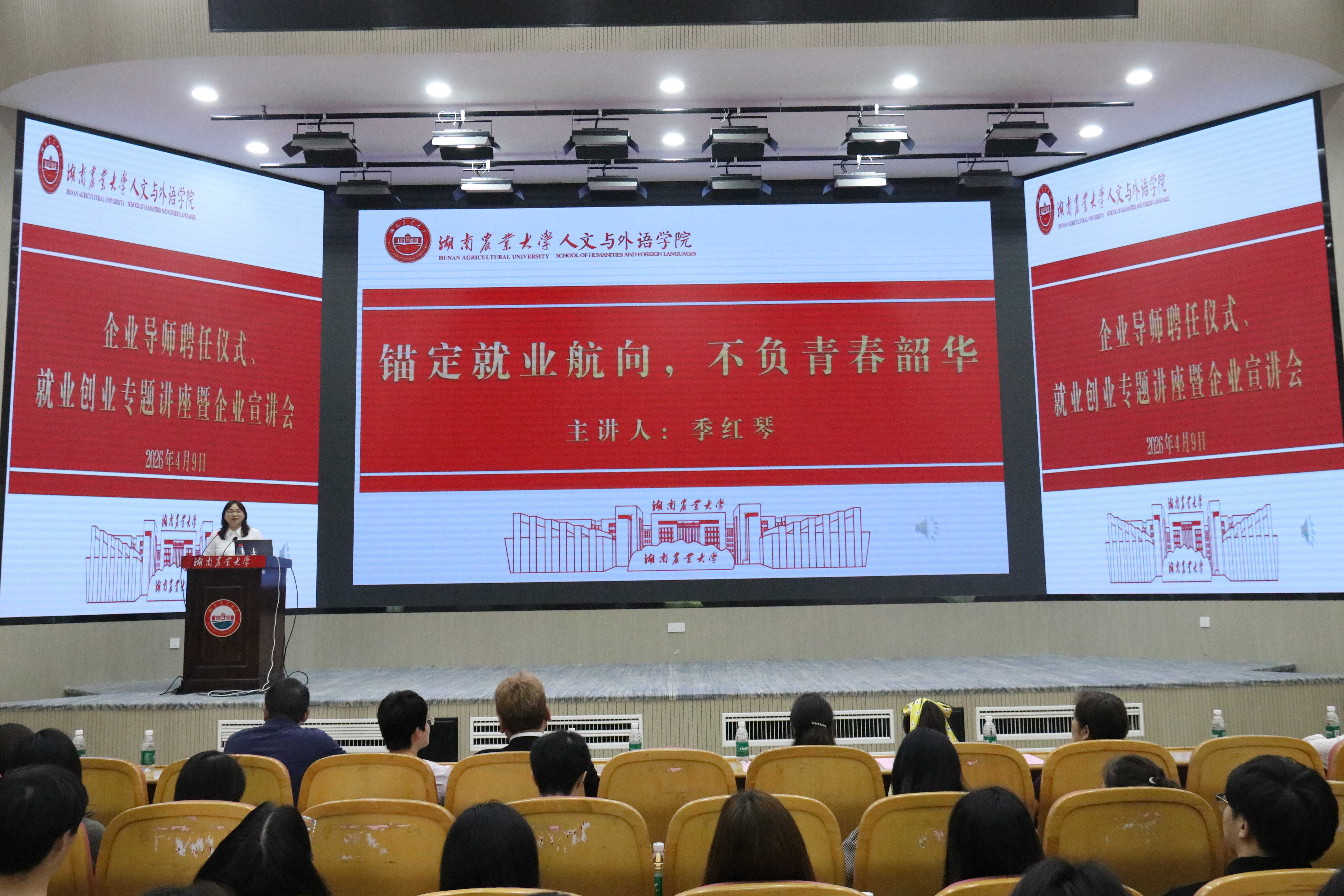 在“就业第一课”环节,季红琴以“锚定就业航向,不负青春韶华”为主题,从人才需求与自我提升两个维度,为在场学子擘画职业发展蓝图。她指出,当前企业对外语人才的需求主要聚焦三大核心能力,一是扎实的语言能力,二是国际化背景与留学经验,三是丰富的实习实践经历。她要求同学们,既要注重“硬实力”的积累,也要关注“软实力”的塑造,要千方百计夯实专业基础,把握实习机会,不断开拓国际视野,以自信姿态迎接职场挑战。